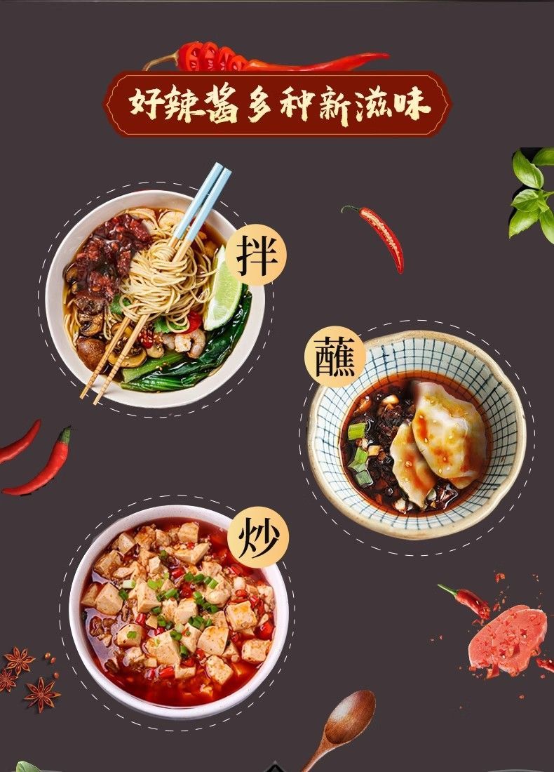 百搭万能‌:拌饭、夹馍、炒青菜、炖豆腐、火锅蘸料皆宜